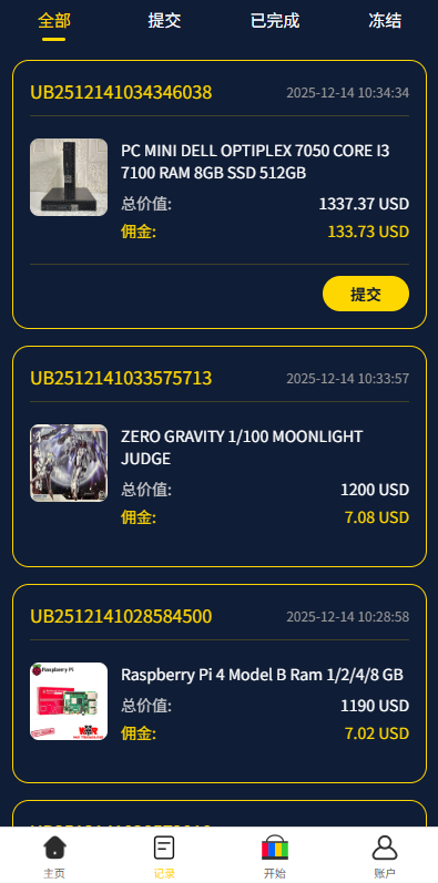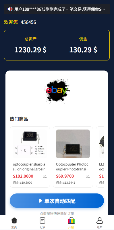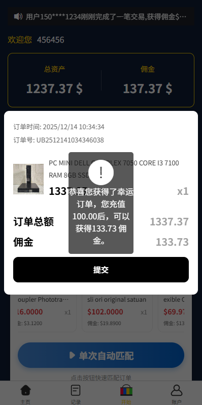 自由设置每一个订单的金额及佣金比例,亦可直接设置1-40单;若设置的订单金额超过用户余额,则显示:请充值XXX元,以获得佣金XXX元。
