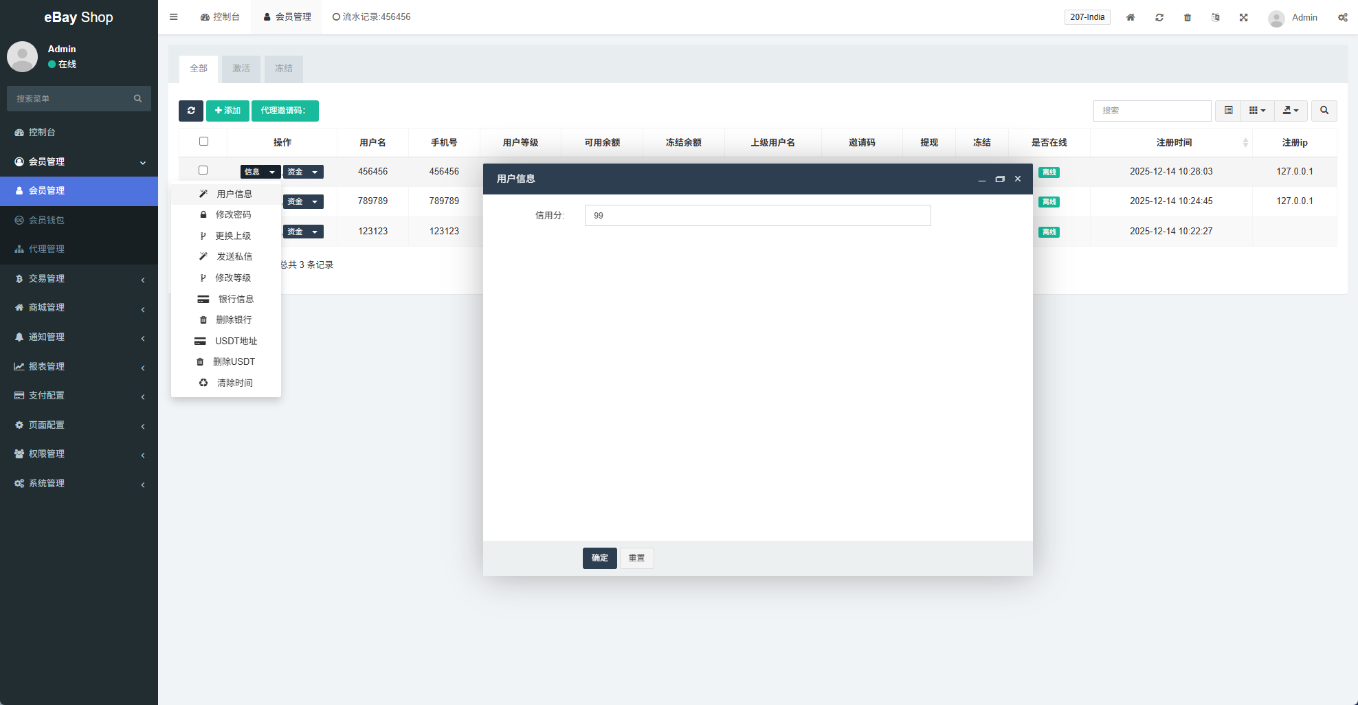 支持设置用户信用分;